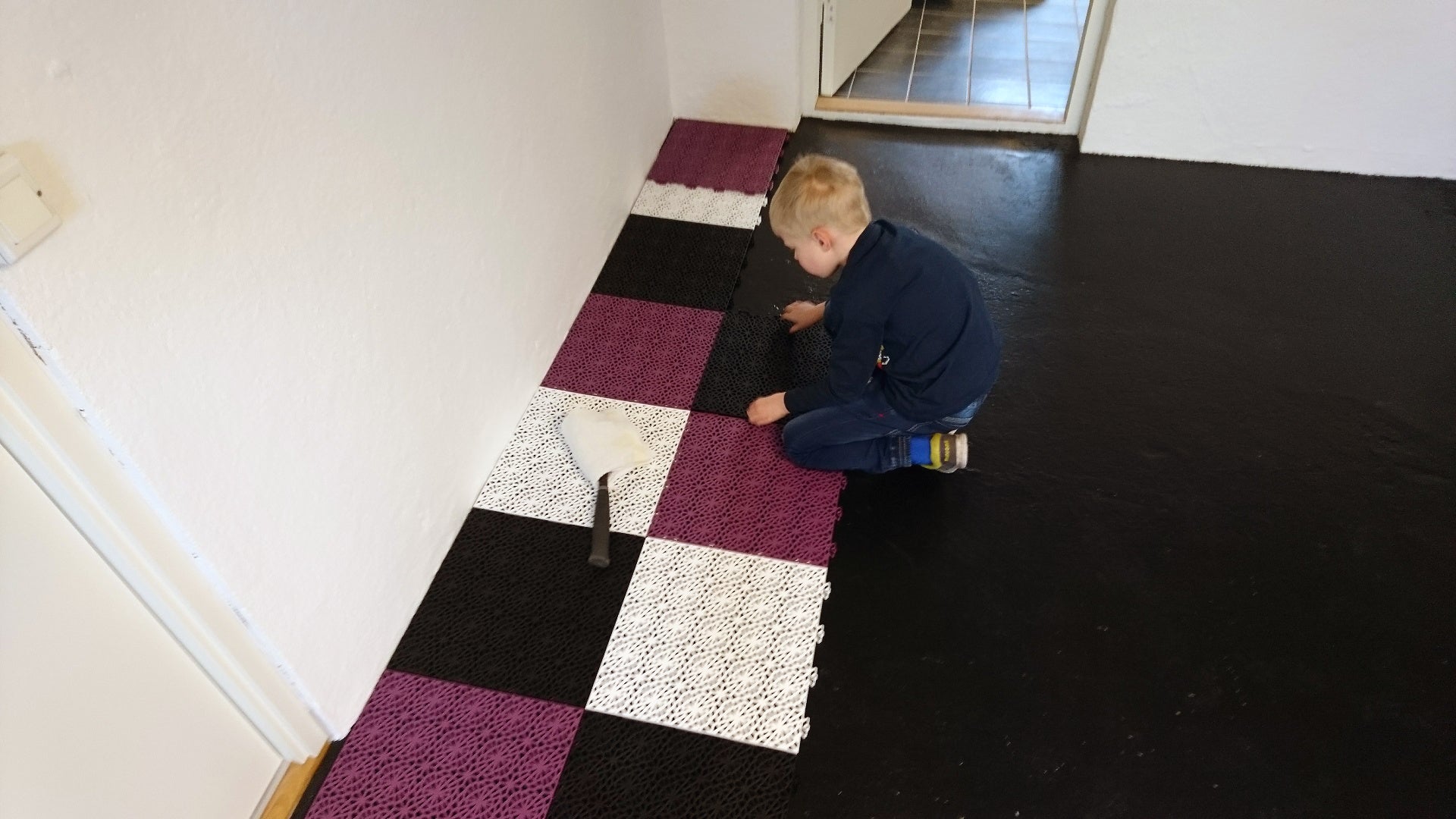 Det är enkelt att städa – smuts och sand sugs upp genom håligheterna när du dammsuger. För grundligare rengöring kan du lyfta upp det helt eller delvis. Med våra demonteringsverktyg kan du enkelt ta upp enstaka plattor vid behov, till exempel om du vill rengöra en viss yta eller inspektera under golvet.