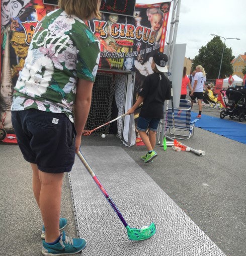 Skottrampen finns i fyra olika storlekar, välj den storlek som passar dig bäst och bygg enkelt ut din yta senare om du vill ha större träningsyta.
