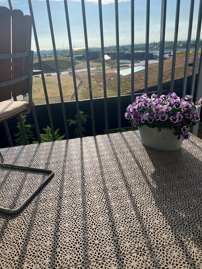 - Snabb omvandling och installation utan verktyg på betong, asfalt, trätrall eller annan hård yta. Inga kemikalier eller lim behövs under installationen.