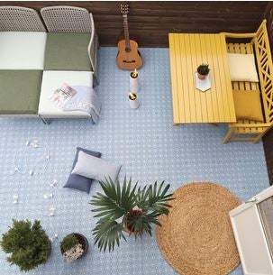 - Snabb omvandling och installation utan verktyg på betong, asfalt, trätrall eller annan hård yta. Inga kemikalier eller lim behövs under installationen.
