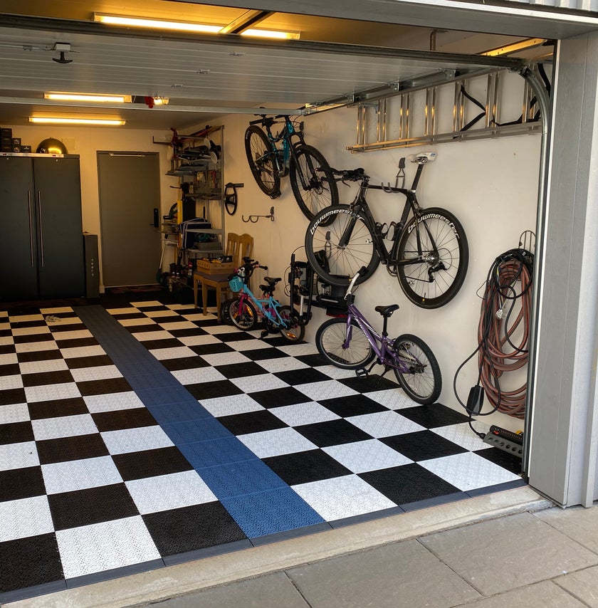 - Snabb omvandling och installation utan verktyg på betong, asfalt, trätrall eller annan hård yta. Inga kemikalier eller lim behövs under installationen.